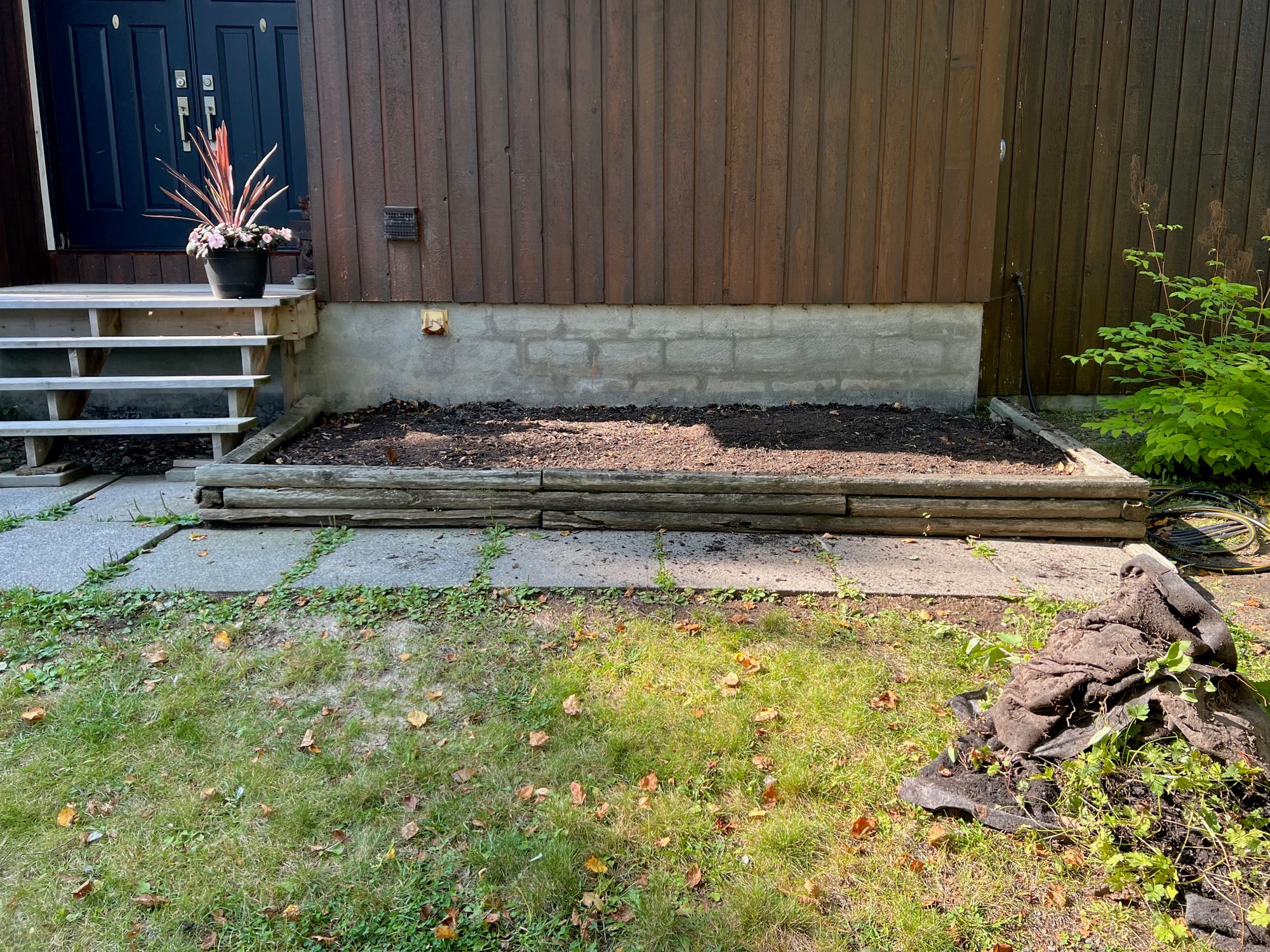 So I transplanted all the woodies elsewhere in the yard, ripped out the landscape fabric / remaining mulch, and did a quick weed / levelling of the soil. It was time for something new.